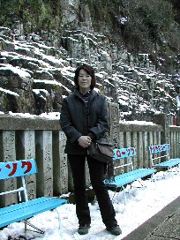 奥社の境内は雪で真っ白だった。こんな遠くの奥社まで大勢の人が訪れていた。 奥社に向かって左側は岩の壁となっている。そこにも溶けずに残った雪がたくさんあった。 ![]()