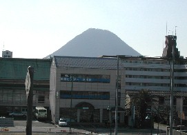 坂出駅の前には讃岐富士と言われている飯ノ山が頭をのぞかせている。 坂出を出ると車窓には坂出コンビナートが見えてくる。 琴平駅に降り立つと金刀比羅宮の門前町らしく石の灯籠が並んでいた。そして、広場には歌舞伎役者の