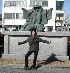 彫刻に興味がある私は、ある店の前に立って作品を見ていた。すると、この店の女将さんが後ろから声を