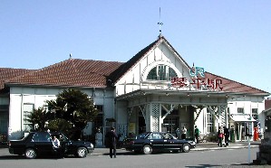 鏡獅子姿の銅像が建っていた。琴平駅自体もこの町にふさわしいレトロな作りの建物だ。この日、町の中は