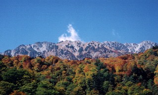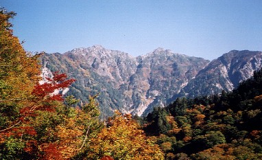 を遙かに越えるような山々です。すそ野の紅葉と荒々しく切り立った山の織りなす景色は、ただただ見事という他はないような