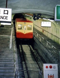 ケーブルカーはかなり急な坂を下りていきます。さすがに、ここら周辺では、まだ紅葉は見られず、夏の終わりのような