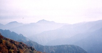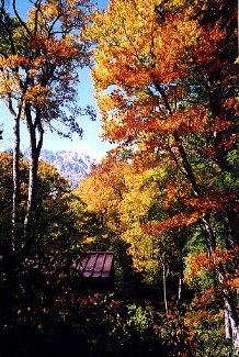 色付き、ほんとうに目の覚めるような美しさです。遙か彼方には名だたる山々が連なり、雄大な山脈を形作っています。