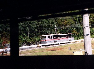 途中、登りバスと下りバスがすれ違います。このトンネルの中には「黒部の太陽」という映画の中で、壮絶な工事場面と