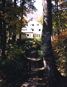 ロッジに見えますが、収容人員は百数十人とのことで、本来は屋根裏にあたる部分まで部屋として最大限利用しているよう
