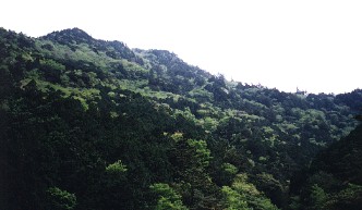 山にかかった霧が立ち上り、新緑が目に眩しい。周辺の山には椎の木が多いのか、山肌を黄色く