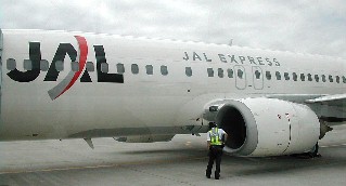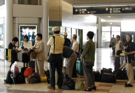 あいにく席が予約出来なかったとの事で、急遽、伊丹空港発となった。 従って、岡山空港経由の貸し切りバスで伊丹空港まで行き、仙台空港に着いた。 飛行機はジャル、仙台空港ロービーでの様子。 ![]()