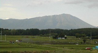 円錐形の山にはところどころに雪が残っていました。富士山にも似た岩手山は岩手県のシンボルとも言う