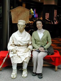 ここはかの有名な松島。八角堂を背にして記念写真。 瑞巌寺へ行く途中にあった和紙で作られた芭蕉像、実に良くできている。 ![]()