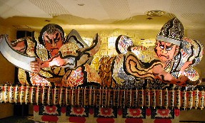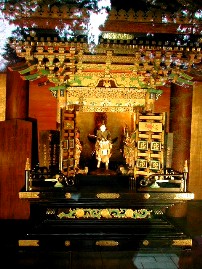 圓通院の境内に置かれた野点の傘の下で。 「光宗公」の霊をまつった絢爛豪華な厨子。厨子にはヨーロッパから持ち帰った文物の意匠が取り入れられていた。 ![]()