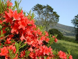 なだらかな丘にはレンゲツツジや小さな黄色い花がたくさん咲いていた。 ![]()