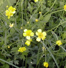 澄んだ青空と緑の山々、素晴らしい景観だった。 右の花はキンポウゲ。 ![]()