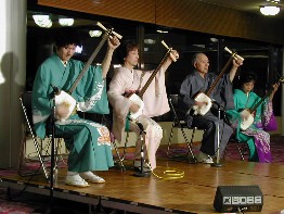 増していました。昼食が終わると津軽三味線の演奏が始まりました。三味線を聞かせてくれたのは