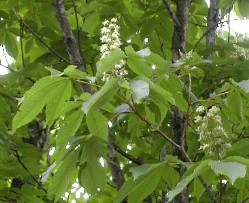 この川の上流に暗門の滝があるとの事だったが、この雨では断念せざるを得なかった。 オオカメノキの白い花が印象的だった。 ![]()