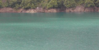 ダムで堰き止められた水は大変透明度の高い水で、太陽の光が当たると、このようにエメラルドグリーンに光っていた。 ![]()