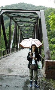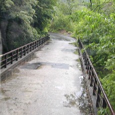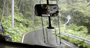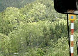 下りました。山間部に入ってから道は急に狭くなりました。途中、何カ所もの橋は何度も切り返しをしなけ