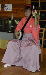 地元で活躍している若手の女性演奏家、力強いバチさばきだった。 ![]()