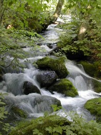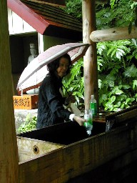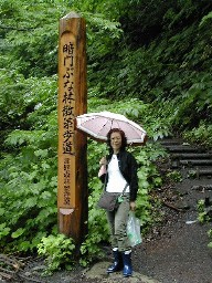 小止みになり歩き始めました。?林の入口には湧き水がありました。私達は帰りに汲むことにして山中に