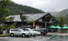 ロッジ風の土産物屋や宿泊施設などがあり、今も新しい建物を建設中であった。 ![]()