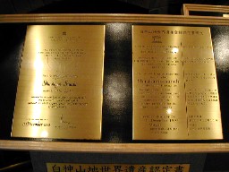 左はまたぎ小屋を再現したもの、そして世界遺産に指定したという事が刻まれたプレート。 バスは再び狭い道を引き返しました。そして大鰐弘前インターチェンジからほんの少し高速道路に入り、