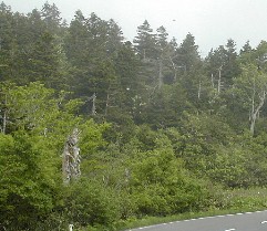 リンゴ園を後にして八甲田に入った。途中から急に霧が濃くなり始めた。 ![]()