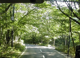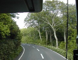 の樹間を明るくしていました。表現のしようがないくらい美しい景色でした。バスはこのぶな林の中を走り