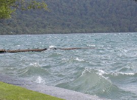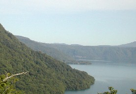 宝仙湖の湖岸道路を通りました。この水系は温泉の影響で酸性が強く魚が住めない川や湖だそうです。