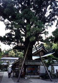 左は極楽寺境内の弘法大師お手植えと言われる長命杉、右は本堂にある地獄、極楽絵図 帰って早速風呂に行きましたが、浴場は他の建物なので浴衣を着てのんびりと言うわけにはいかず、マイクロバスに乗って