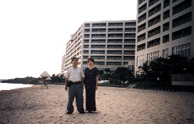 翌朝は天気が回復し青空の元、宿泊したホテル前の海岸にて ホテルを後にして、最後の見学先である首里城へ向かう。首里城は見事なまでに再建されていた。