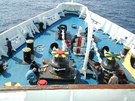 動き始めた船の上では早速修理が始まった。こうして一航海中、色んなところで修理が行われていた。