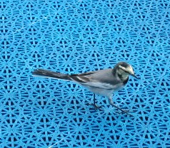 この船には無賃乗船の小さなお客さんが居た。東京から乗ってきたのだろうか。背黒セキレイのようだ。