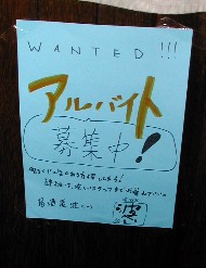 ヨットクラブは夜になると「波へい」という居酒屋になる。その「波へい」のアルバイト募集のポスターが張り出されていた。
