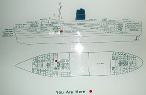 この船の要所要所に張り出されていた部屋の位置を印したパネル。赤い点が、今の自分の位置を表している。
