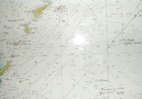 船は沖縄列島沿いに南下していた。レセプションの横に海図が掲示されていた。そこには