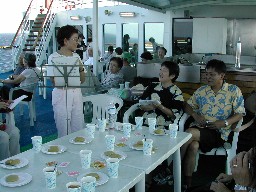 いった。船内では一番殺風景な酒場だが安いのが良い。屋外で海風に吹かれながら飲むのは