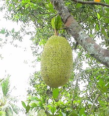何という実なのだろうか。大きな実が幹の途中からぶら下がっていた。(上の写真左)