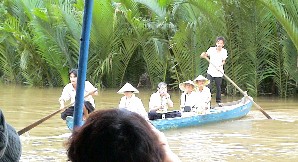 早朝、船はゆっくりと海からメコン川の河口に入っていった。むっとするような湿気を含んだ風