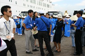 船はやがてベトナムのブンタウ港に入った。港には青色の色鮮やかなアオザイを着た若い