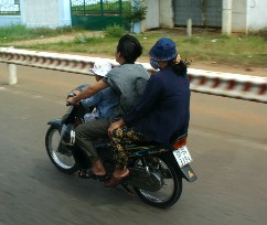 この国の主要な移動手段はバイクだ。こんな家族連れのバイクを何台も見かけた。(写真右)