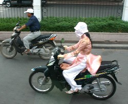 アオザイを着た若い女性のバイク姿も格好良かった。(写真左)