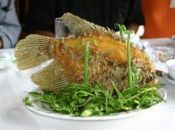 最初に出てきた料理はエレファントフィッシュという淡水魚を唐揚げにしたものだった。昔は