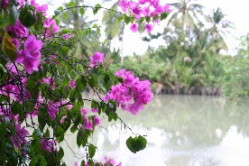 立ち寄ったレストランはメコンデルタの細い水路沿いにあった。水路の向かい側はデルタ特有