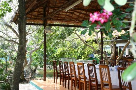 の植物が鬱蒼と茂ったジャングルだった。レストランの中は美しい花が咲き良く整備されていた。
