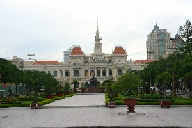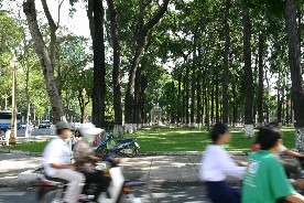 かつては南ベトナムの首都であっただけに立派な建物がたくさんあり、また、大きな道路の中央は公園のようになっていた。(写真左)