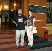 ホテルコンチネンタルの玄関で(写真右)