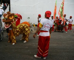 港へ着くと交流会に参加した若者達を見送る人達がたくさん来ていた。中には獅子舞もいた。