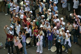 だった。その歌に合わせて青いアオザイ姿の女性達が白い傘を持ち、大きな輪になって踊りを