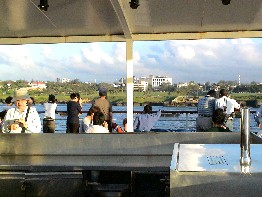 私達は岸辺に展開する南国らしい景色や遠く密林と思われる景色を眺めながら朝食を済ませた。(写真左)