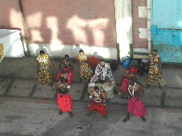 そして、賑やかなジャンベの音や歌声が聞こえてきた。地元の人達が歓迎の歌や音楽を演奏していたのだ。(写真右)