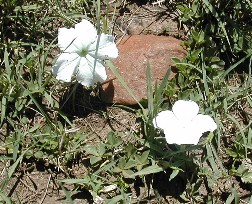 よく見ると草原に点々と白く散らばっていたのは紙くずではなく、この白い花だった。その名もティッシュフラワー。(写真右)